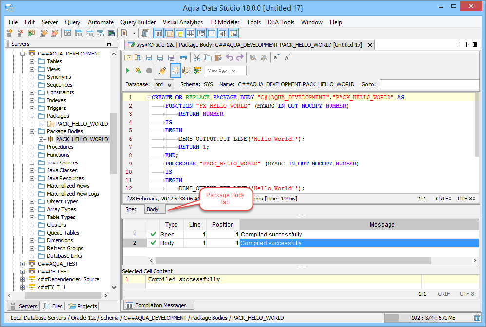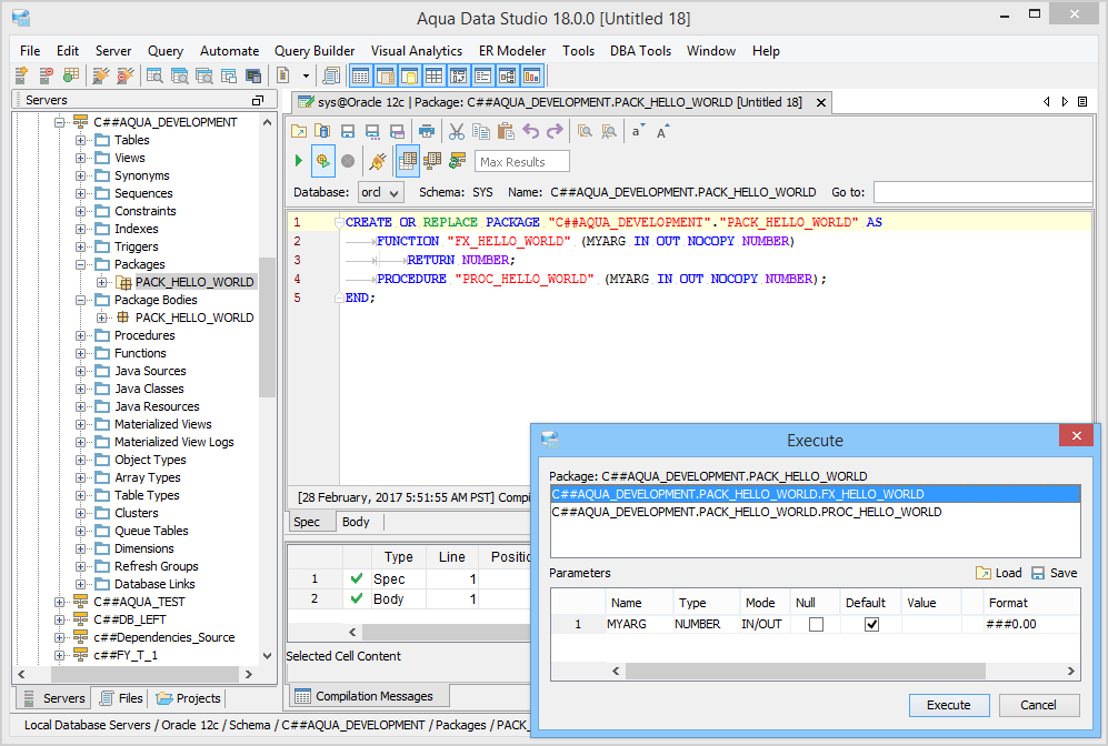 Aqua Data Studio’s PL/SQL and Package Editor offers the user a compilation and execution environment for the development of packages.