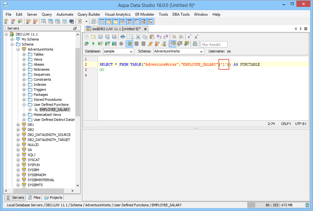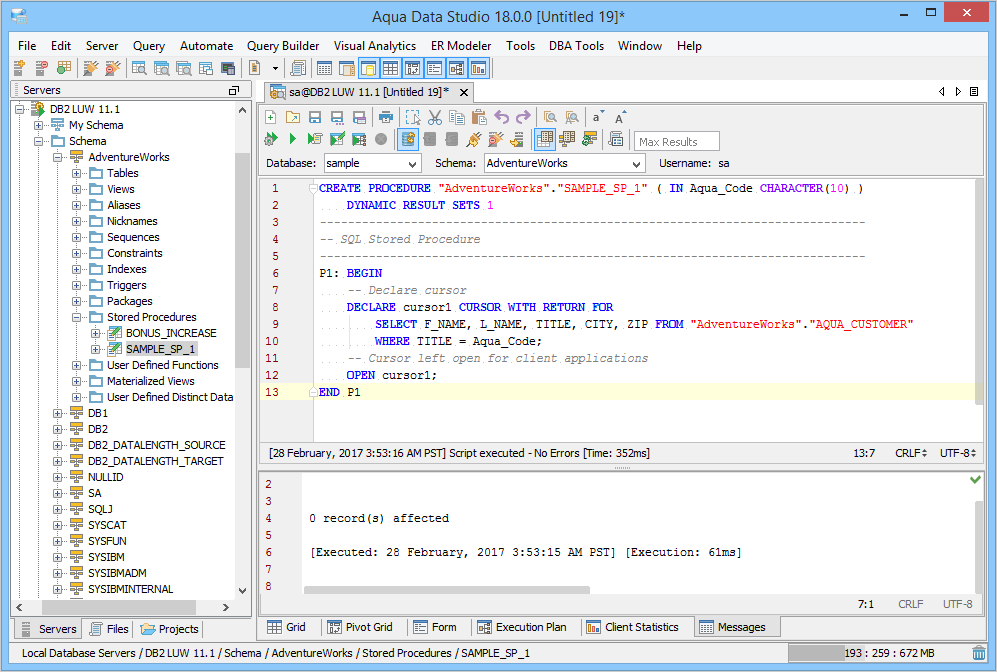 Creating and Executing a Sample Stored Procedure in Aqua Data Studio (DB2 UDB)