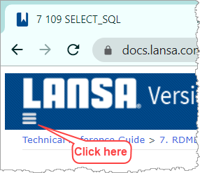 The Google search entry box is on the main contents, or Home page, of the documentation. This search is limited to just the LANSA documentation so you don't pick up unrelated documentation from another site.
