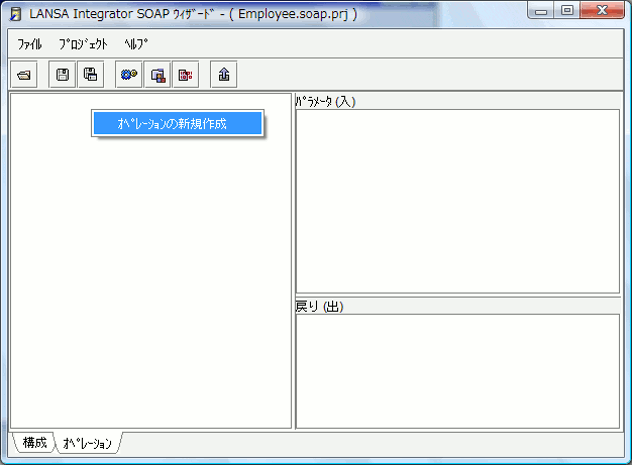 エンド ポイントのURLは生成された WSDL ファイルで使用されます。 - サーバー サービスに操作を追加するには、[オペレーション] タブを選択して、[オペレーション] パネルを右クリックします。