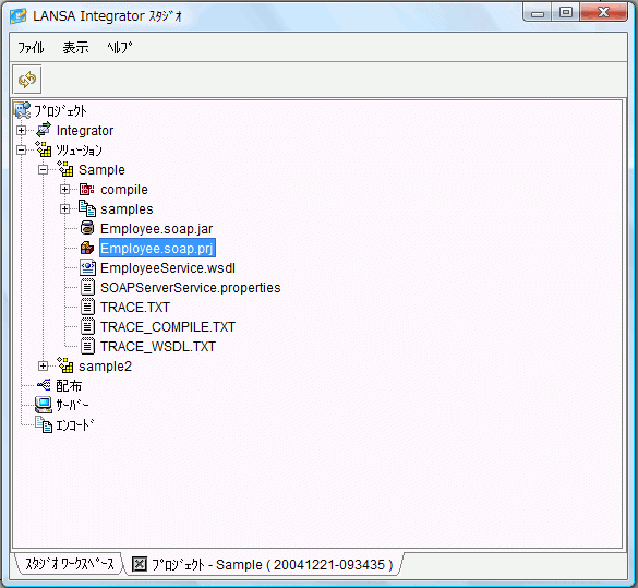 サービス・プロパティと WSDL ドキュメントを含むファイルがソリューション・ディレクトリに作成され、サンプルは samples サブティレクトリに作成されます。