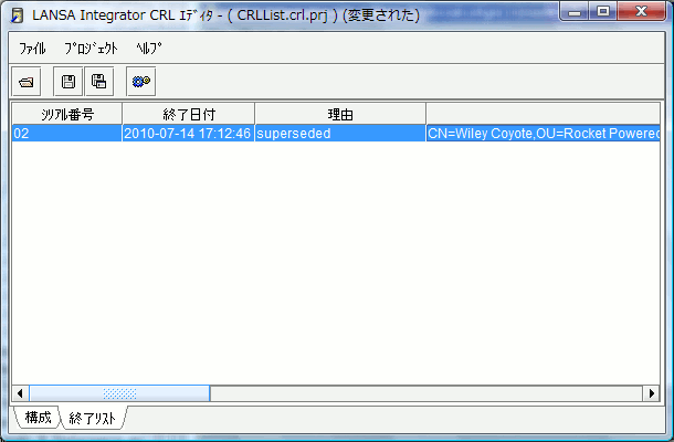 [名前] 列 (右側の4番目の列) は、エントリーを特定する場合にのみ使用され、CRLファイルには含まれません。