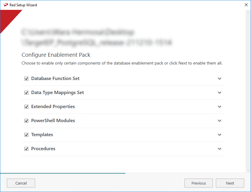 Database Function SetEnables you to select the RED database function set that will be installed with the enablement pack.