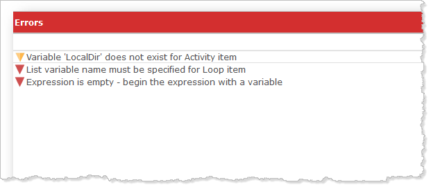 Errors tab