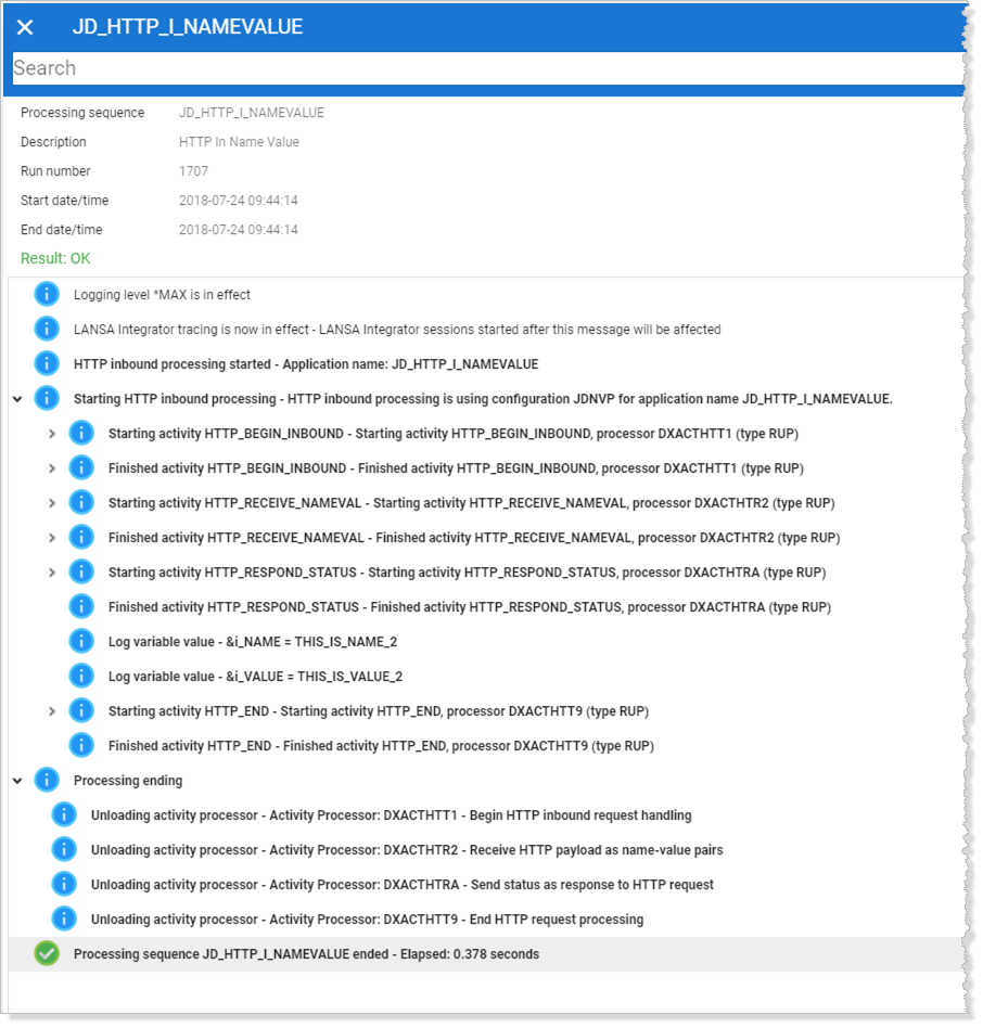Processing Sequence Log