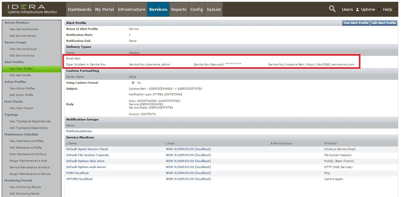| Version 1 (current) | 168 kB | Unknown User (npollard) | May 24, 2022 13:55 | ServiceNow Alert Profile.jpg | ||||