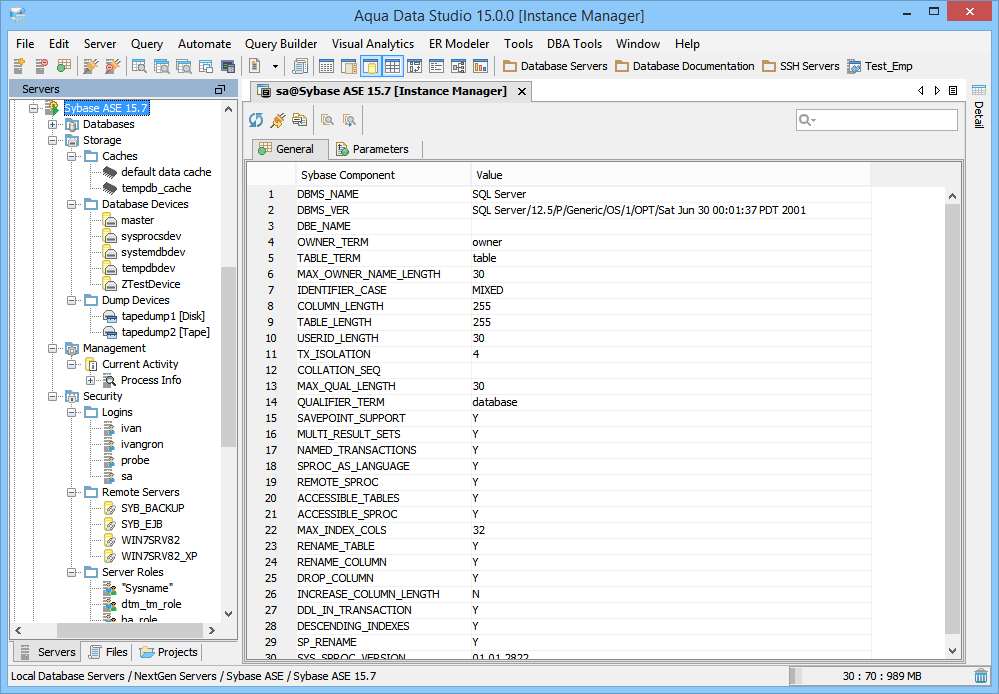 General Tab - Provides a summary of the Sybase instance DBMS_NAME: Name of the DBMS | |