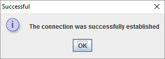 A successful connection test displays the following dialog: - Click OK.