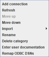 | Import | Select From external format to create a new connection from the definition in the selected XML. |