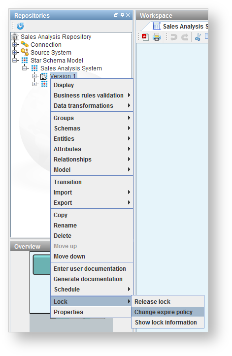 1. Right-click on the version and select Lock>Change expire policy.