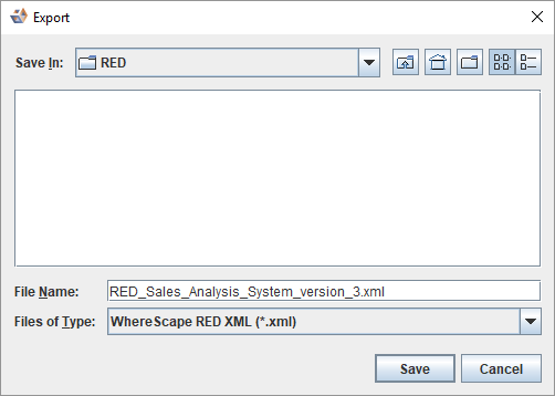 2. Choose where you want the exported XML file to be saved. This contains the application to be loaded into a WhereScape RED repository.