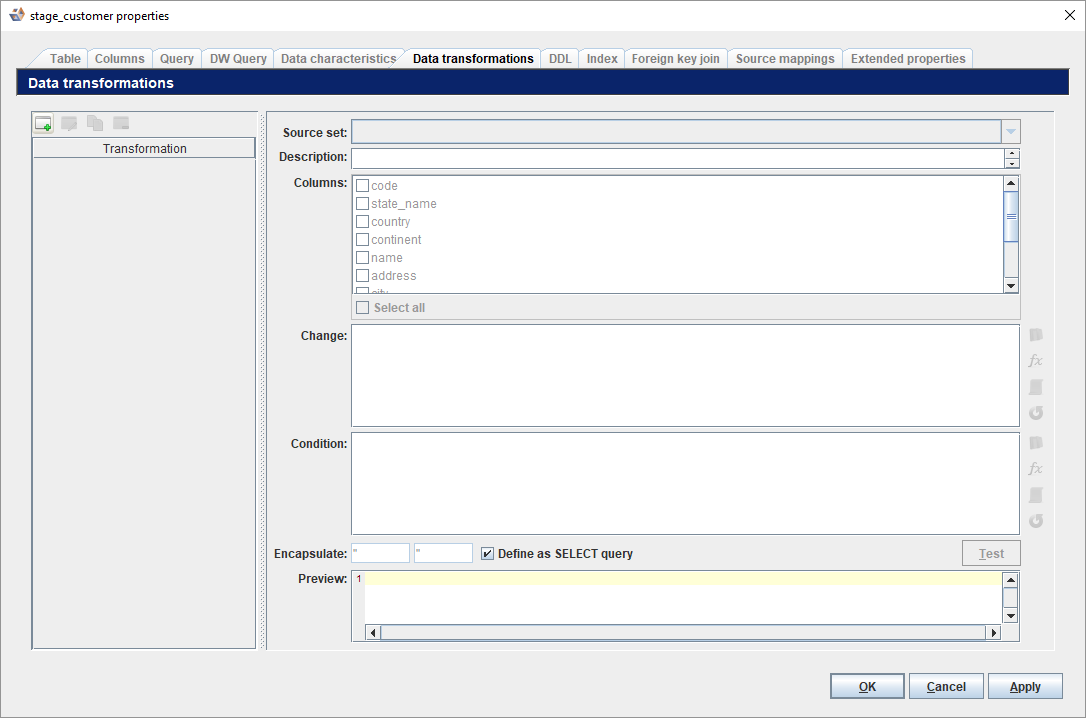 - Select the Data Transformation tab.