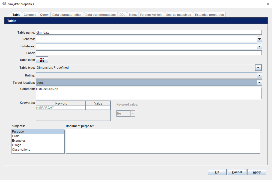 - Navigate to an entity Properties dialog and select the Target location from the drop-down list.