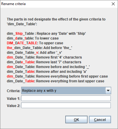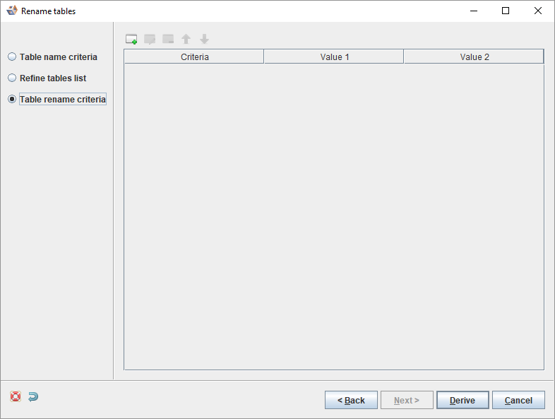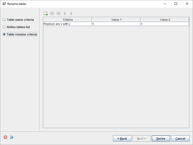 - From Table rename criteria, manage the rename criteria, click to add a rename criteria.
