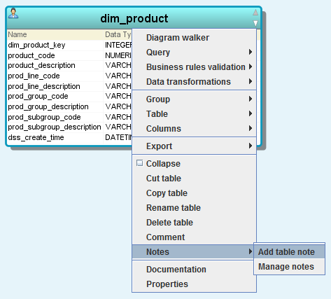 1. Right-click on a table in the diagram and select Notes>Add table note.