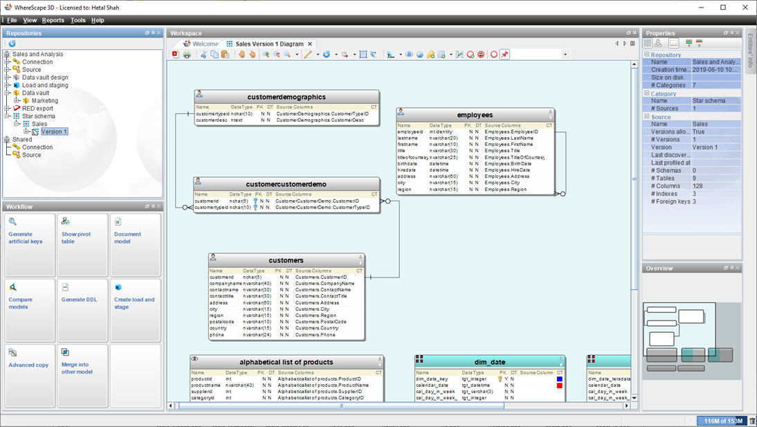 - Select a model version and select Create star schema from the Workflow pane.