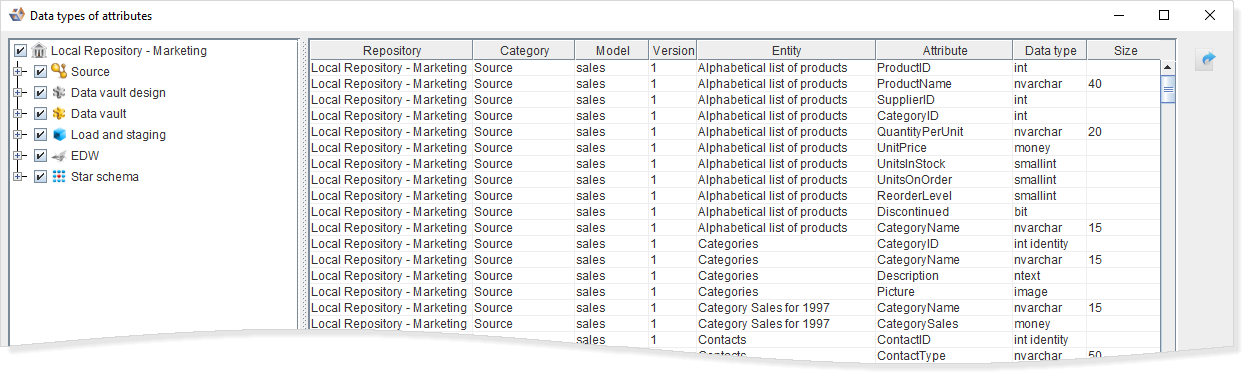 In the left pane, select the repositories, categories, models and versions that you wish to be included in this report.