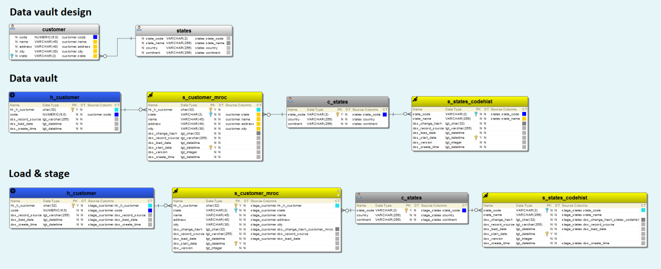 The load and stage model currently has a workaround in place for integrating with WhereScape RED. That is the Business key attributes on Code Satellites will be assigned as Hub hash key. However, it does introduce an issue if there exists a composite primary key on the Code entity