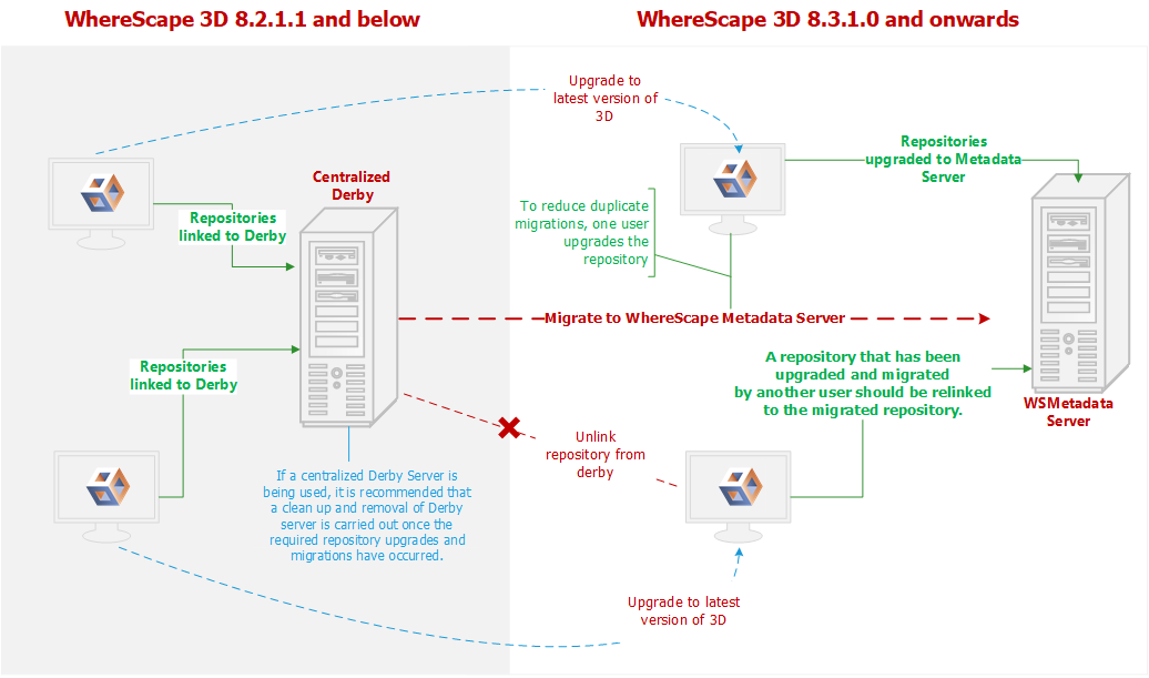 Before upgrading WhereScape 3D, it is recommended you back up any repositories as part of our standard upgrade procedure. Upgrading any repositories older than 8.3.1.0 will display the Migration Wizard. The WhereScapemetadata server was upgraded in version 8.6.2.0. Upgrading the metadata server is not a requirement for using WhereScape 3D 9.0.2.1