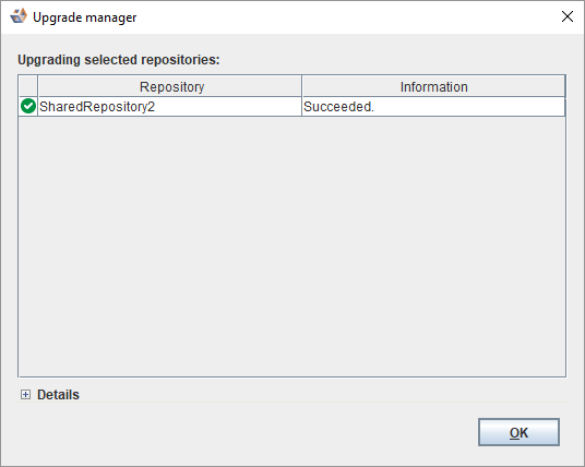 - Click Upgrade. The Migrate legacy repository dialog is displayed.