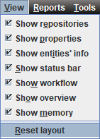 To reset the window and bring back all the panes, select Reset layout from the View menu option, as shown in the following screenshot: