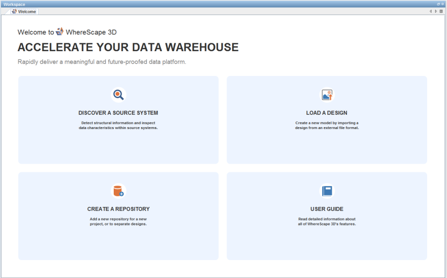 The Workspace is the central pane of WhereScape 3D where you can work with diagrams.