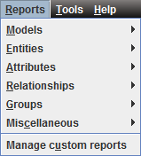 The Reports Menu is used to access the reports available in WhereScape 3D. Refer to Reports for details.