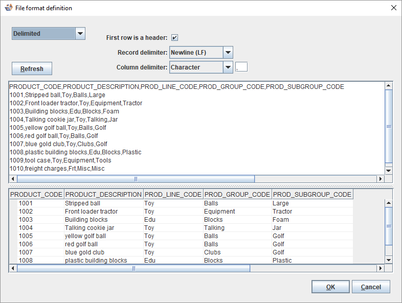 • If the first line of the file contains the column names, checking First row is a header will use them and assume that the column data starts on the second line.