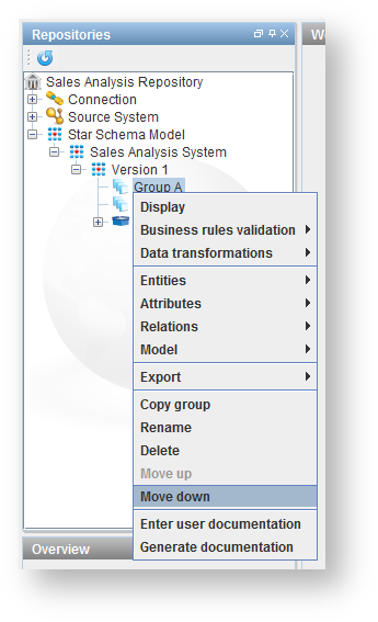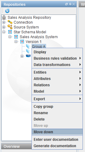 To move a group down in the tree, right-click on the group and choose Move down.
