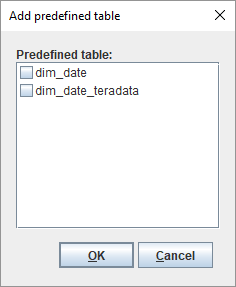 - If the predefined table already exists in the diagram and you are making a copy, enter in the name for the new table.