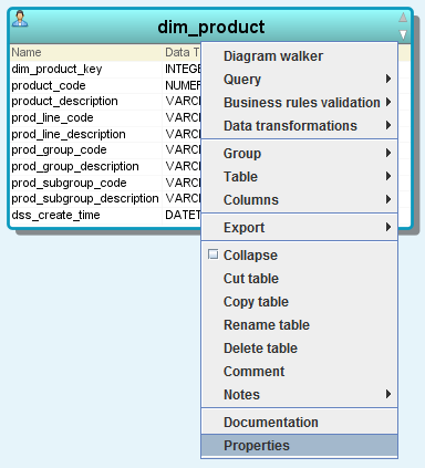 1. Right-click on the header part of the entity and choose Properties.