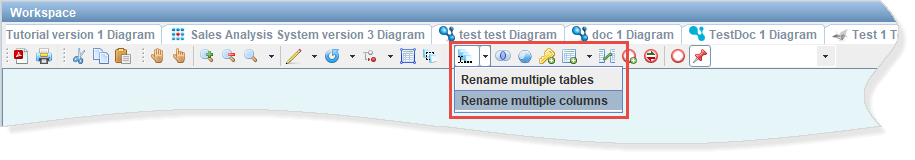 - This can also be done from the Rename multiple entities button in the diagram tool bar. The split button displays the Rename multiple tables and the Rename multiple columns wizard.
