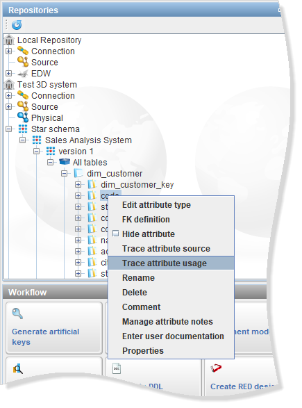 Tracing Usage can be done for a single table. Tracing Usage can also be done for schemas and groups and in this case will show all attributes within the diagram.