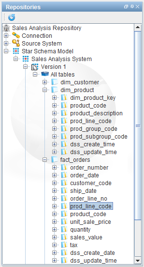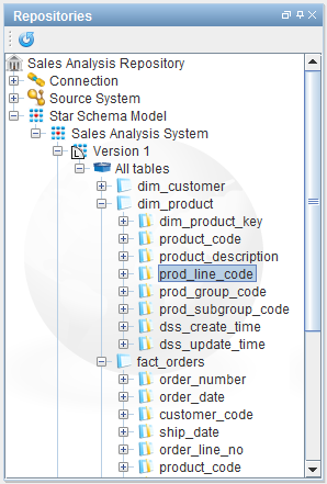 - Click on a table and drag it into the chosen schema in the tree. In the example below, we will drag table dim_customer from Version 1 into Version 2, thus creating a copy of the dim_customer table.