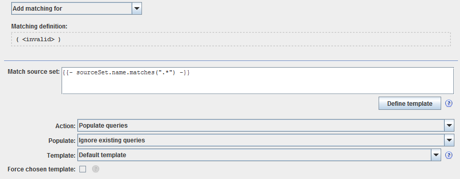 Force chosen template | Check to force the selected template to be used. If this option is not selected, the matched entities' set template will be used to generate the query. |