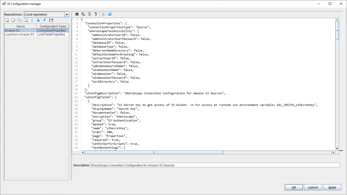 UI Configurations allow the user to define the fields available on certain configurable UI's. WhereScape 3D stores any data captured in these fields and treats it like any other object metadata, making it available to all automation aspects of the tool.