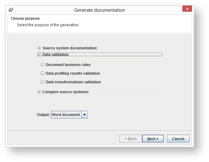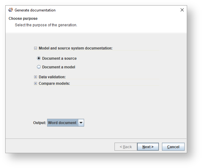 To begin the documentation generation wizard: