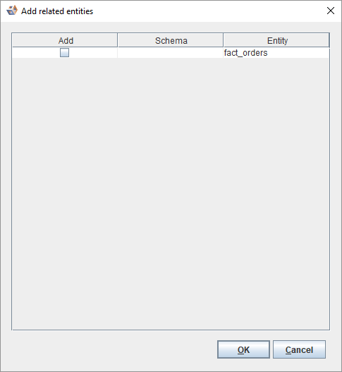 - Right-click on the header part of the table fact_orders and choose Table, then Add related tables.