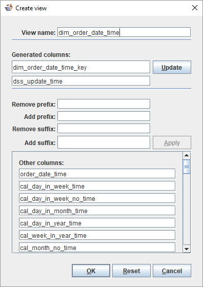 - To Add a prefix or a suffix to all columns, enter the syntax you want to add and click Apply.