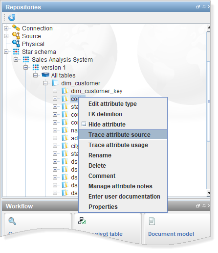 To trace the source of an attribute, right-click on an attribute and choose Trace attribute source: