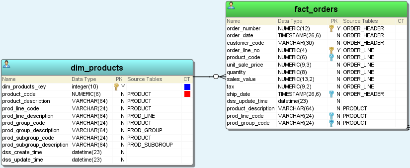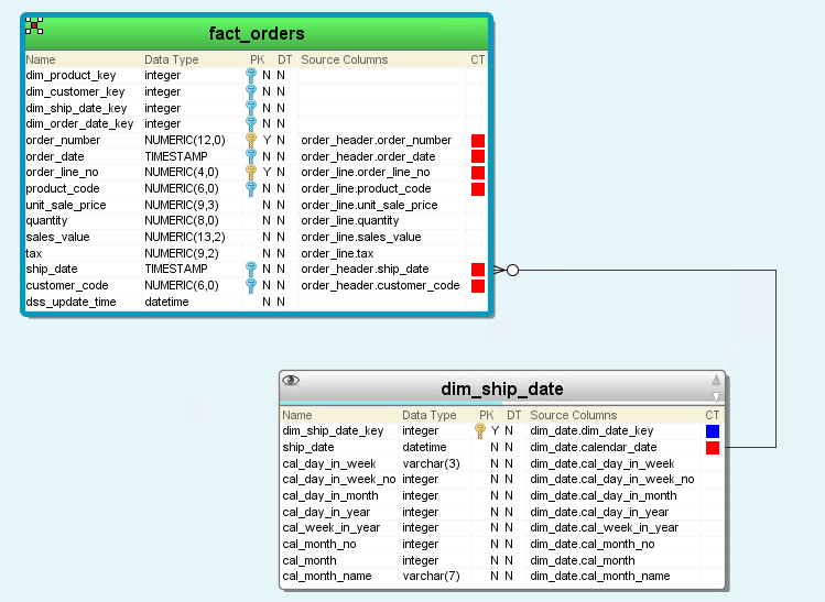 Notice that the link line is thicker and darker to show that this single line represents multiple relationships. - If the attribute you want to create a relationship to does not already exist in the table, 3D can add it automatically when creating the relationship. To do this, click on the header of the entity in the diagram and drag it to an attribute in the diagram.