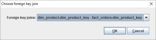 - From the Choose foreign key join dialog, select the relation from the drop-down list and click OK: