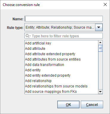If the rule should only be applied for specific RDBMS, select them in the RDBMS Filter drop-down menu. If nothing is selected, the rule is always applied when the model conversion is run.