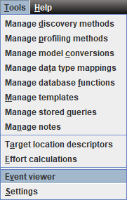 When the event viewer is opened from the Tools menu, it shows all events currently in the event log.