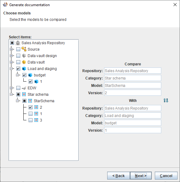 2. Select the two models to be compared and click Next to continue.
