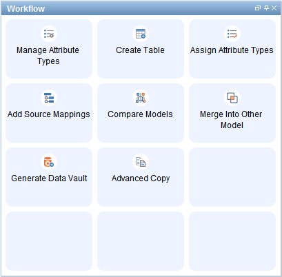 The data vault design model allows users to design a model with attribute types assigned to all the attributes. This allows the Generate data vault wizard to interpret these into Data Vault objects