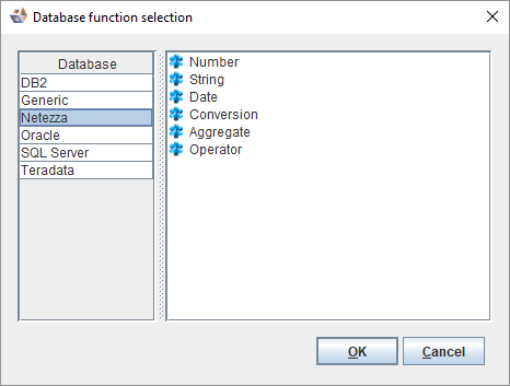 Click Insert function to select a database function to be inserted.
