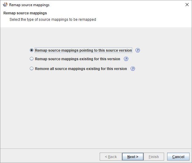 - If you select the Remap source mappings pointing to this source version or Remap source mappings existing for this version radio buttons, then click Next to continue.