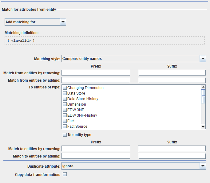 To entities of type | Specify the type of entities to be used for matching |