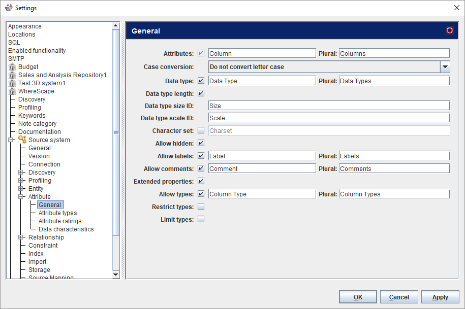 Enables or disables types for Attributes and sets their name (and the plural name).